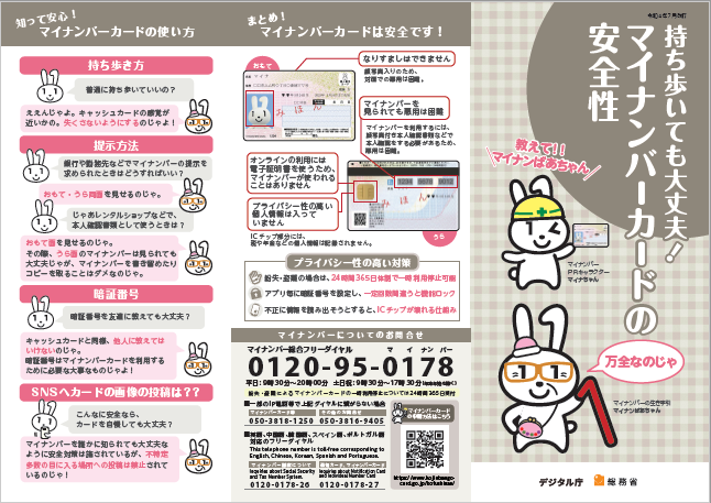 マイナンバーカードは普段から持ち歩いて大丈夫なカードです。なりすましや不正アクセスが起きないように厳しく監視・監督が行われています。マイナンバーカードは本人確認書類の他に保険証利用の機能もつけられるようになり、利便性が増してきています。また、コンビニ交付のような急な証明書の発行も可能になっているので、ぜひご活用ください。